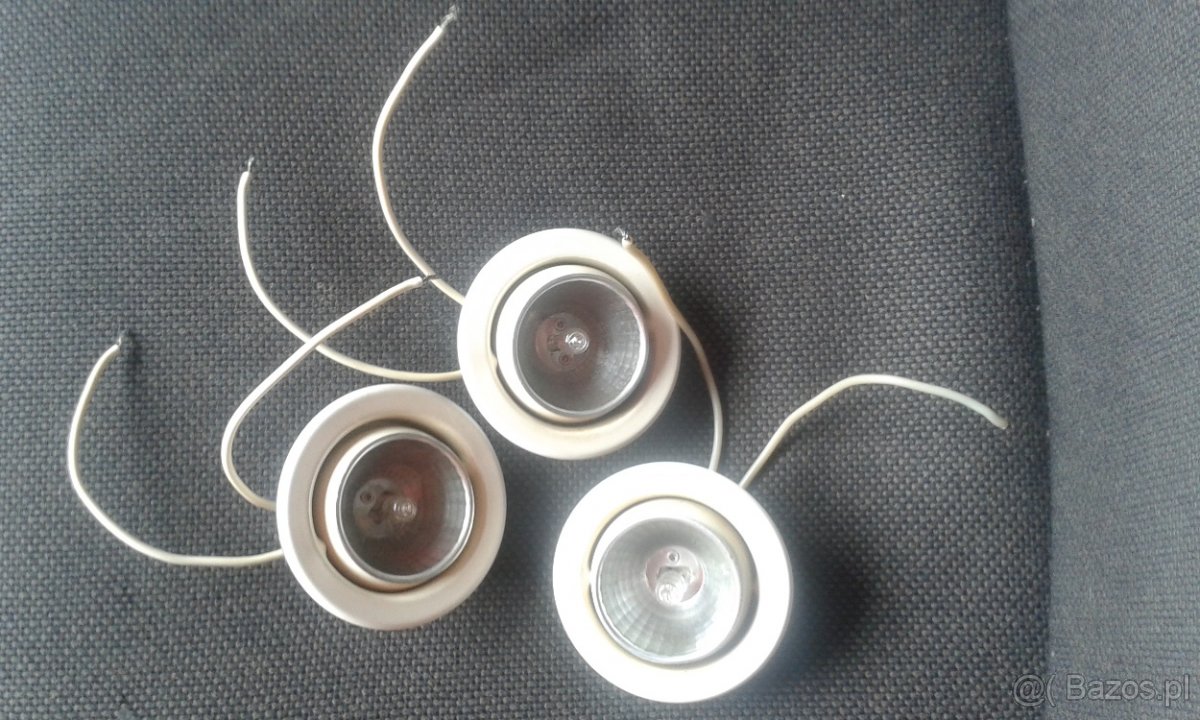 Sprzedam trzy jednakowe sprawne oprawy oświetleniowe z żarówkami LZH-1 max 20W 12V. Cena za trzy sztuki 20 zł.
